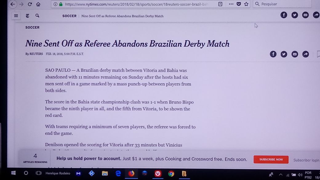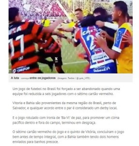 O BaVi deste domingo (18) entrou para a história. Mas foi de uma forma negativa. A briga no estádio, provocando a finalização do jogo antes do horário, chegou a ser estampada pelo New York Times. Outros sites da imprensa internacional também repercutiram o “jogo da vergonha”.