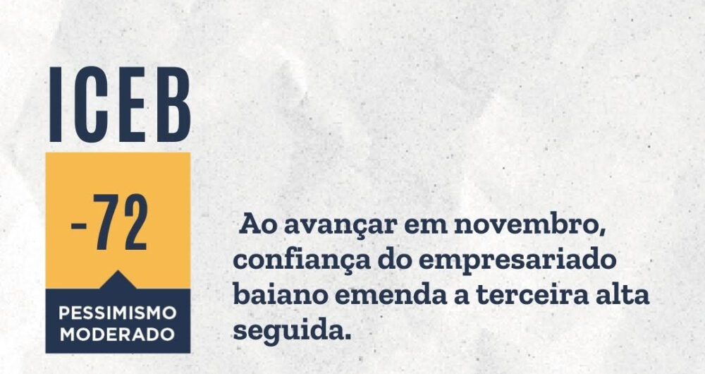 O Indicador de Confiança do Empresariado Baiano (ICEB), métrica calculada pela Superintendência de Estudos Econômicos e Sociais da Bahia (SEI) para monitorar as expectativas do setor produtivo do estado, marcou -72 pontos em novembro, numa [...]