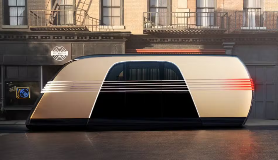 A Robovan lembra um vagão de trem e apresenta laterais metálicas prateadas, com detalhes em preto e tiras de luz. Também possui portas que deslizam a partir do centro. Segundo o site TechCrunch, no interior, há assentos e espaço para ficar em pé, com janelas escurecidas por toda parte. Também possui televisores, mas não há volante.