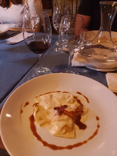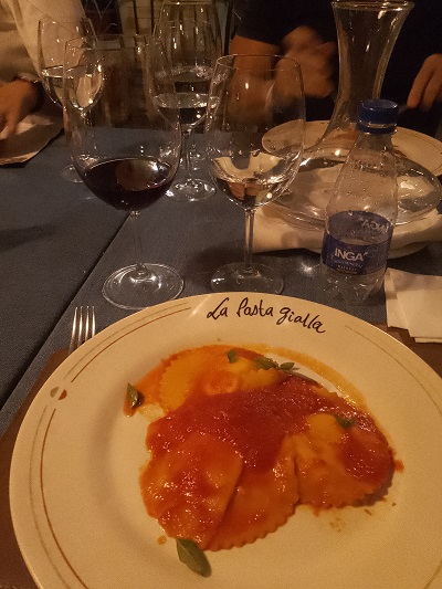 Com taninos macios, o vinho Rosso Puglia (R$ 125) foi muito bem com três das quatro massas artesanais servidas como pratos principais: Ravioli gigante de muçarela ao molho sugo; Ravioli de costela ao molho branco e riscos de molho roti; e Ravioli de siri com pomodoro, leite de coco e pimenta dedo de moça.
