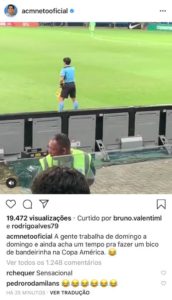 O próprio prefeito brincou na postagem: “A gente trabalha de domingo a domingo,  e ainda acha um tempo pra fazer um bico de bandeirinha na Copa América’. Em 25 minutos, a postagem já tinha mais de 19 mil visualizações.